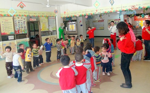 幼兒陽光體能教師在迪斯尼幼兒園為老師和幼兒上“陽光體能”課